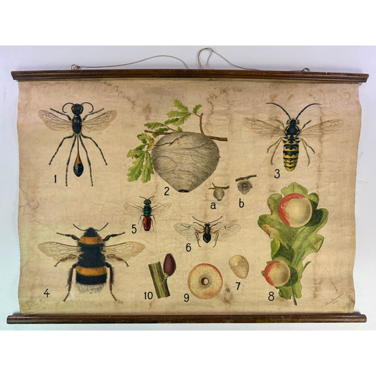 ORIGINAL POSTER - 1920s - ENTOMOLOGY SCHOOL CHART (WASP NEST & OAK GALL)