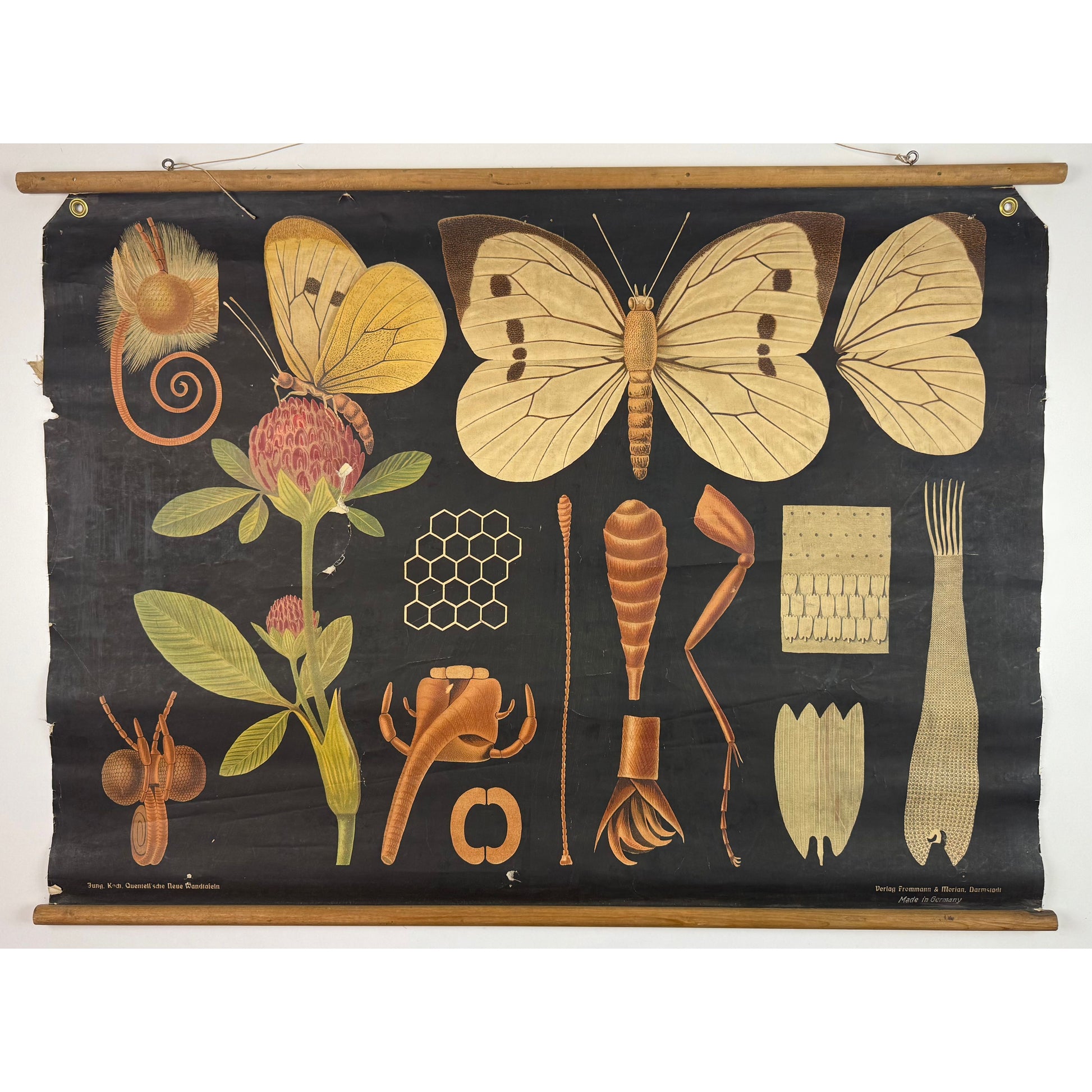 Original botanical school chart by Jung, Koch & Quentell depicting the cabbage butterfly. Made in Germany